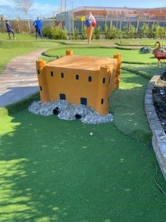 Adventure Golf Specialist Adventure Golf Design, Build & Run Services Adventure Golf Courses are a smart additional feature to enhance many establishments, including: Council Developments, Driving Ranges, Golf Courses, as well as Leisure Parks. Being both an affordable and profitable investment makes Adventure Golf Courses an easy business solution, due to low maintenance and build plans being so cost efficient. Increased demand for themed Adventure Golf Courses, mainly on Leisure Parks, is providing a great way to encourage family engagement and fun for all. Also, having a themed course designed and scaled your way means that you can budget for the costs whilst maximising profits for the long-term investment. All courses are designed and themed by a more than competent building team; each holding a wealth of knowledge and experience in their trained field of expertise. Courses are all designed requiring low maintenance features and an endurance suitable for all weather types. High returns on investments therefore being the result of the design team. Enjoyed by a diverse range of visitors, Adventure Golf Courses provide safe and affordable fun for the whole family to play. In-House Design Adventure Golf Solutions believe that the planning and preparation stage of an Adventure Golf Course is vital and of the upmost importance. This being due to the theme and choice of course, followed by the number of high-tech fixings warranted to ensure that the course is built and installed to perfection. Themed Adventure Golf Courses are increasing in popularity and fast becoming an exciting feature; Pirate Adventure, followed by Jungle Adventure themed courses being the most desirable yet. Planning and building teams ensure that help and assistance is on hand throughout the whole design process from start to finish, right down to fine tuning the finishing touches. Each fixture and fitting needed is researched and sourced in-house ensuring perfection with each build and installation. Course design is professional and tailored to meet your requirements, working closely to remain within budget. If budgets are stretched too tight then solutions can be implemented to help manage the plan. For example, saving on the cost of grassing and shaping greens could be an option that we are more than happy to accommodate, should you like to manage this yourself. Working closely with you ensures that factors such as theme of course, number of playable holes, as well as, size and layout are also considered, when finalising the planning and development. Confusion or crossed wires with the in-house design team is never going to happen due to the level of support and commitment to the project; each feature is carefully planned and designed to meet your expectation. Superior Build Quality – High Grade Materials & Advanced Installers With the planning stage finalised and the details outlined, you are then assigned an Install Manager, who oversees the entire build and installation process with you. Relax and watch Adventure Golf Solutions make the magic happen. From the beginning to the end of the project, the Install Manager will be responsible for the build stays on task. For example, remaining within the allotted budget, keeping the project to time-scale and ensuring that the build and installation runs smoothly. Quality checking the work means that a high standard is delivered as promised. Only the best materials, products and fixtures are used to build and install Adventure Golf Courses therefore, ensuring the high-quality finish as expected. Nylon Putting Grass is of the highest grades and looks professional too. Fringe Grass is not only Award Winning, but makes the course look fantastic. Also, the aggregates used are top quality materials to ensure the high-standard is maintained. With the props all being hand-crafted and designed carefully, there is little room for error. Self Build & Management Services Adventure Golf Solutions have designed, built and ran two successful Adventure Golf Courses recently; giving us extensive knowledge and skills in the trade and has assisted with our key to success. Valuable learning curves and challenges are ever present and have tested the design and build teams on many occasions. However, this has strengthened the team who strive for a professional build. Adventure Golf Solutions and partners, Showcase Greens Adventure Golf deliver a quality service to ensure smooth management and running of the course, as well as, maintaining your investment provides the desired profits. Case Study – Highfields Park Adventure Golf May of 2017, Nottingham saw the opening of a brand-new adventure golf course, themed on the town of Nottingham itself. With 18 designed and themed, playable holes; fitted with the best Artificial Grass, Wonder Yarn 26mm and WetPour Pathways that connect the whole course together. Adventure Golf Solutions fitted and installed synthetic golf and fringe surfaces on the 1200 metre course. Winning the ‘Which? Best Buy Award in 2016’ was a major success and as a result, saw visitors come and play in their thousands over the May Bank Holiday Weekend. The multi-million-pound investment to revamp and restore Nottingham’s Highfield Park included the installation of the golf course. Also, restoration took place on the boating house by the lake, bowling greens and croquet lawns at the same time. Using locally themed designs for the whole project, Robin Hood and Sherwood Forest were two of the major designs. Also, local sports teams including football and cricket were featured as designs, along with Beeston Lake and the City of Caves. Quotes were taken from the Highfields Park Adventure Golf Site Manager, Jordan Foster, who said “Our first weekend was very successful, with people commenting on the local design of the golf course. Visitors also mentioned how good the quality of the Golf surface is. The golf course will be popular with families for some summer fun.”. Hi